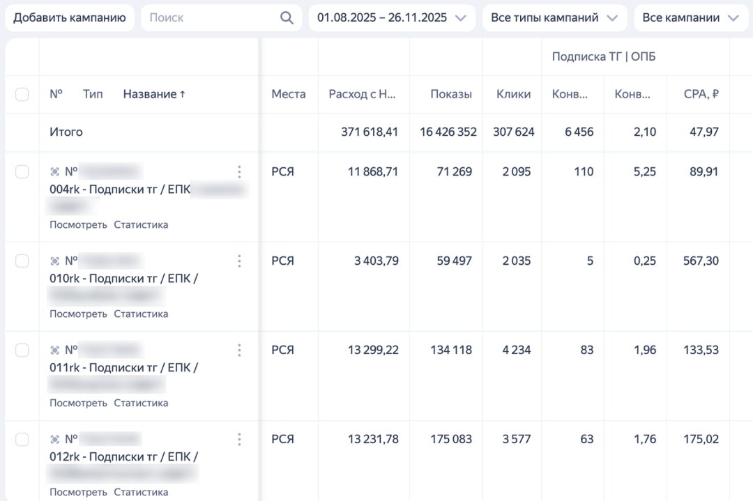 Найти связки с ценой подписчика от 50 рублей удалось не сразу. Это результат планомерной работы, тестов и оптимизации кампаний.